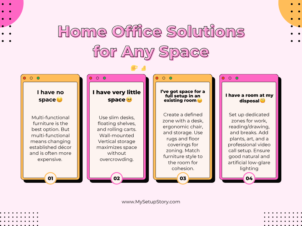 If you’re short on space, do not worry, it just means you’ll need to modify an existing part of your home to accommodate the home office setup.